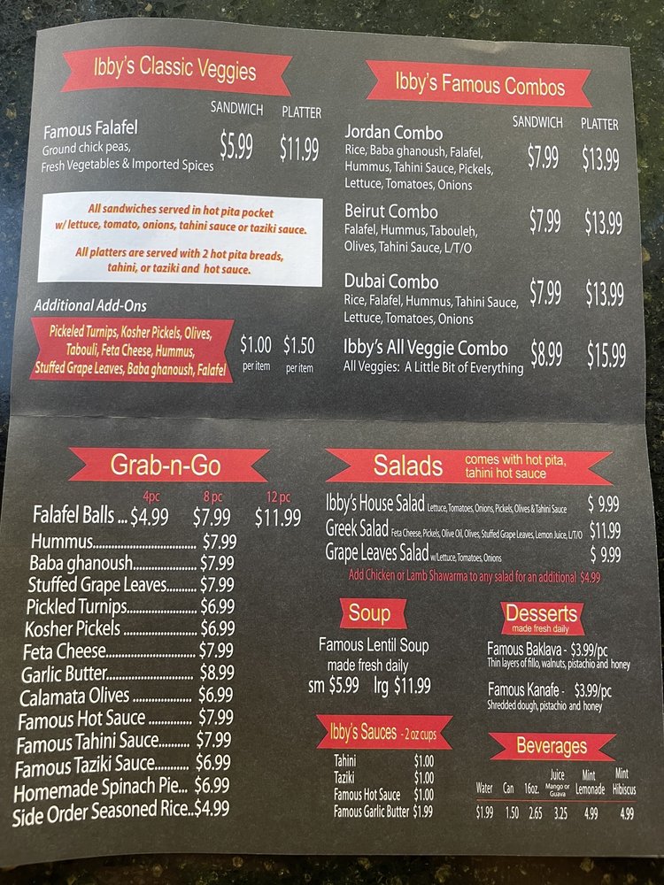 Ibby’s menu stars a range of mouth-watering vegetarian options. The Famous Falafel Sandwich, crafted with freshly ground chickpeas and aromatic spices, is a must-try. Served with a refreshing tahini sauce, it encapsulates the essence of authentic falafel. For those seeking variety, the Healthy Veggie Combo presents an enticing assortment of falafel, baba ghanoush, and tabouli, ensuring a satisfying meal.